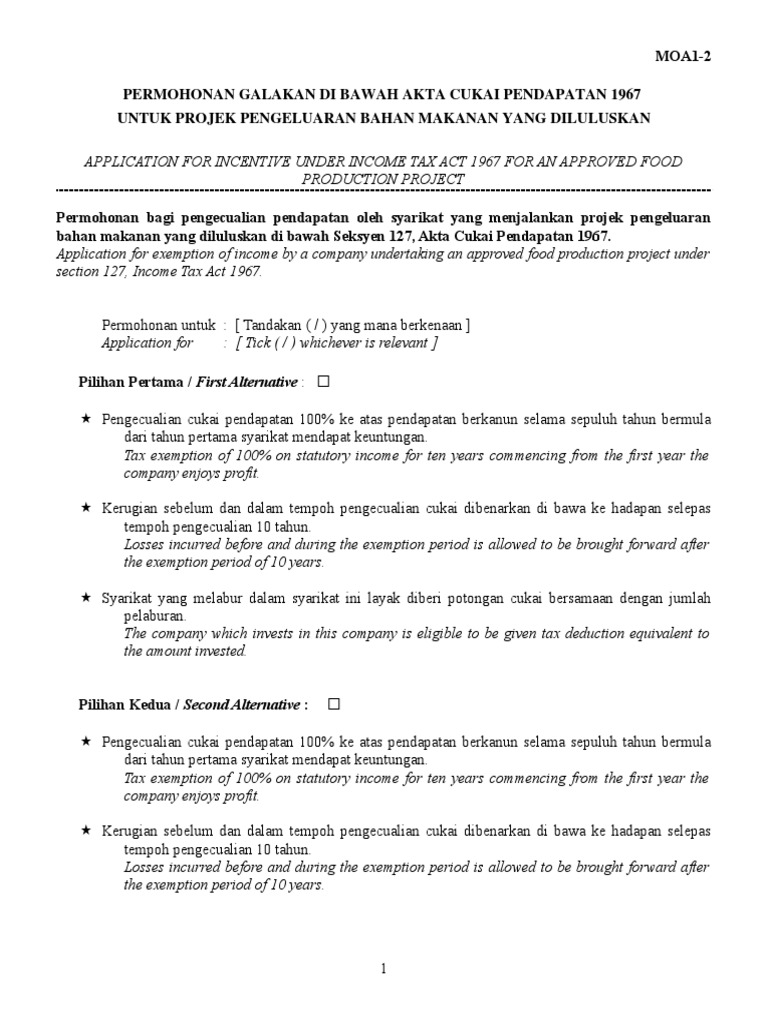 Garis Panduan Permohonan Galakan Di Bawah Akta Cukai Pendapatan 1967 1