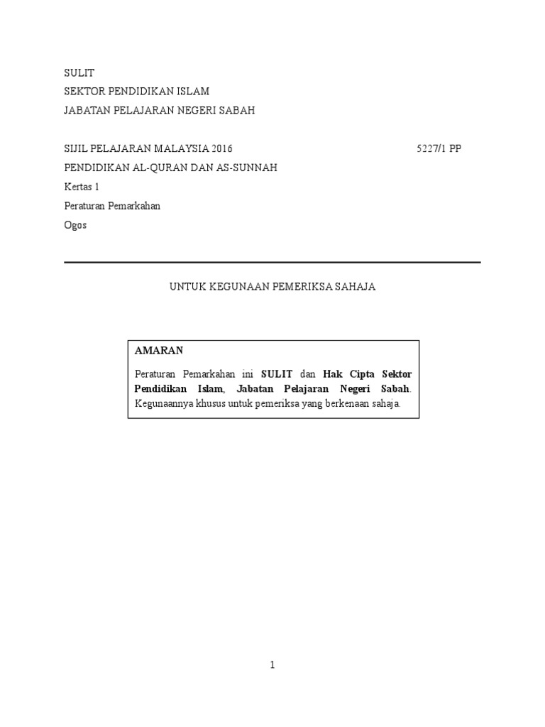 Kertas 1 Skema Pemarkahan Percubaan Spm 2016 Negeri Sabah