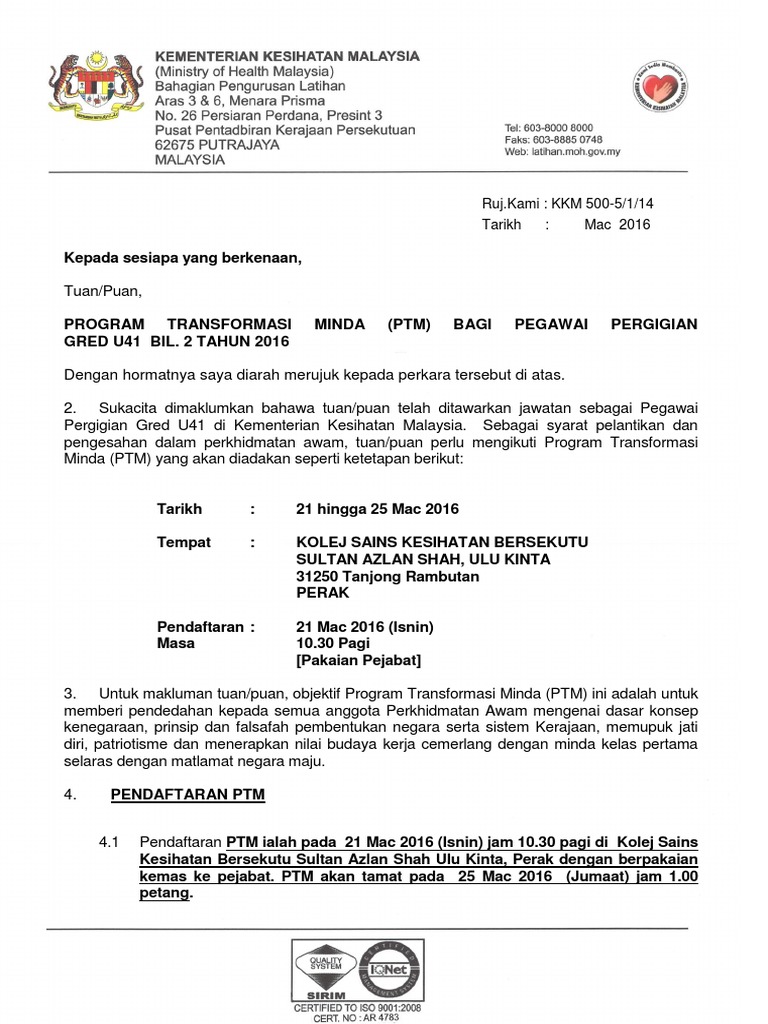 Http Www Moh Gov My Moh Resources Semakan 20kerjaya Surat Panggilan Ptm On9 Pergigian Siri 4 Portall Pdf