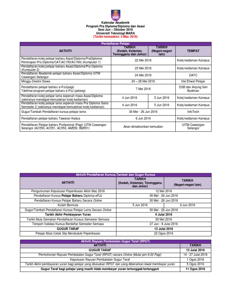 Keputusan Permohonan Ke Program Uitm Sesi 2 2016 2017 Info Pelajar