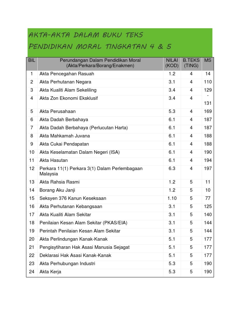List Of Malaysian Law Acts Senarai Akta Akta Malaysia