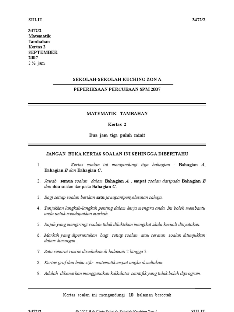 Daftar sekarang di dalam subjek ini anda akan mempelajari konsep fungsi dan fungsi songsang. Nota ringkas matematik tambahan spm dalam bahasa melayu sijil pelajaran malaysia. Kertas model spm matematik tambahanbahagian a 40 markah jawap semua soalan. Murid murid tidak perlu menghafalkan formula di bawah kerana ia akan diberi semasa ujian.