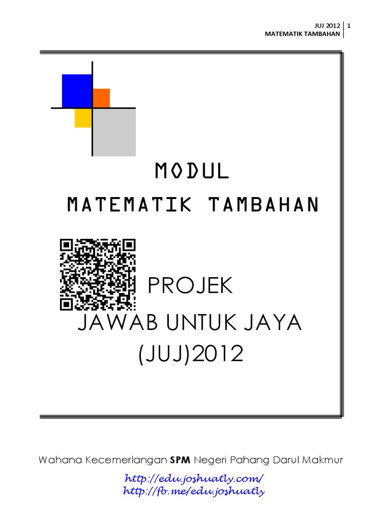 Portal ini dibangunkan untuk membantu guru guru pelajar dan ibubapa dalam proses pengajaran dan pembelajaran yang lebih bersistematik. 1 3472 1 3472 2 rumus matematik tambahan algebra 1 2 4 2 b b ac x a 2 am an a m n 3 am an a m n 4 am n a mn 5 loga mn log am loga n 6 loga n m log am loga n 7 log a mn n log a m 8 logab a b c c log log 9 tn a n 1 d 10 sn 1 2 2 dna n 11 tn ar n 1 12 sn r ra r ra nn 1 1 1 1 r 1 13 r a s 1 r 1 calculus 1 y uv dx du v dx dv u dx dy 2 v u y 2 v dx dv u dx du v dx dy 3 dx du du dy dx dy 4 area under a curve b a y dx or b a x dy 5. Calon yang tidak dapat menduduki mana mana kertas peperiksaan bertulis atau melaksanakan ujian lisan khusus calon persendirian akan dianggap tidak hadir bagi mata pelajaran berkenaan. Nota nota ini telah direka bentuk untuk memantapkan pengetahuan dalam ilmu matematik tambahan.