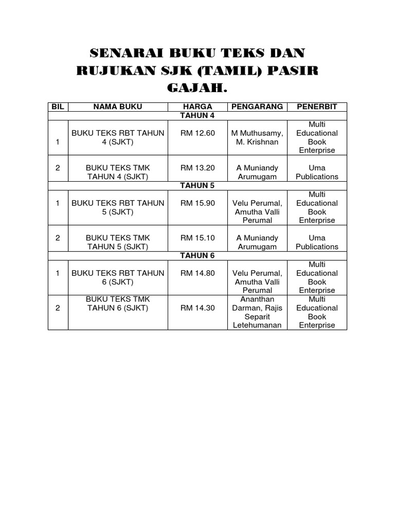 Senarai Harga Buku Teks Sekolah Kebangsaan Tahun Satu Hingga Tahun Enam Emarieys
