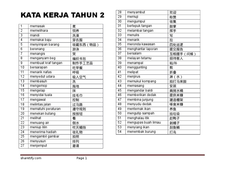 Senarai Kata Kerja Tahun 2
