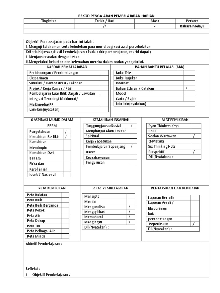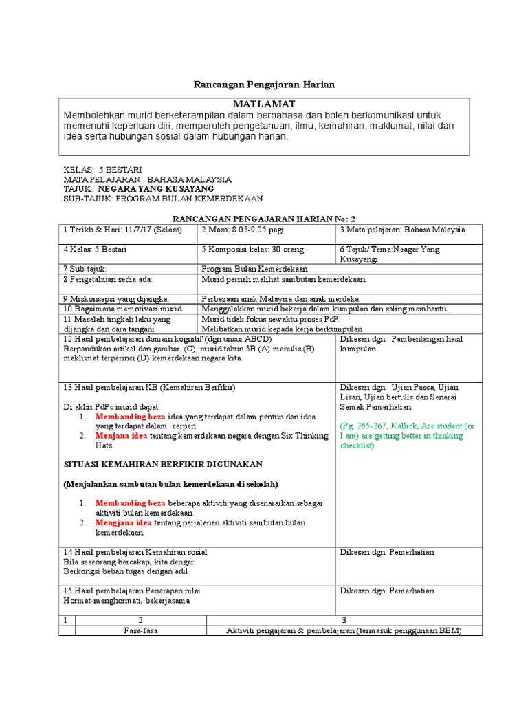 Kerangka Kerja Rph Kemahiran Berfikir Pdf Pdf Document