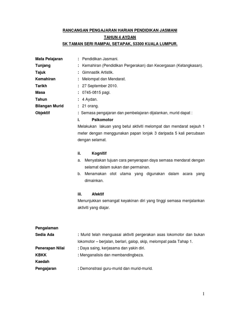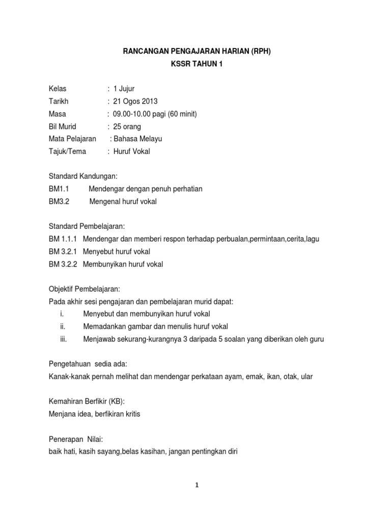 Contoh Rph Pj Kbsr 1