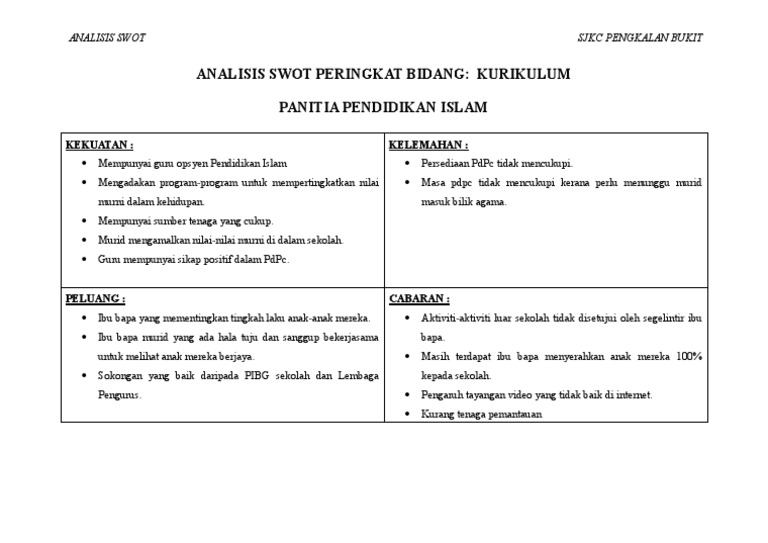 Analisis Swot Peringkat Bidang Pai 2018 New