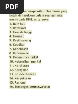 16 Nilai Murni Dalam Pendidikan Pdf Document