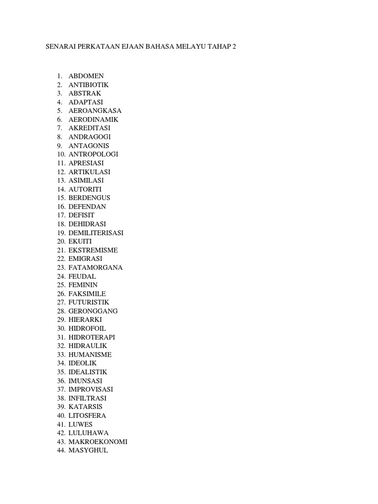 Senarai Perkataan Ejaan Bahasa Melayu Tahap 2