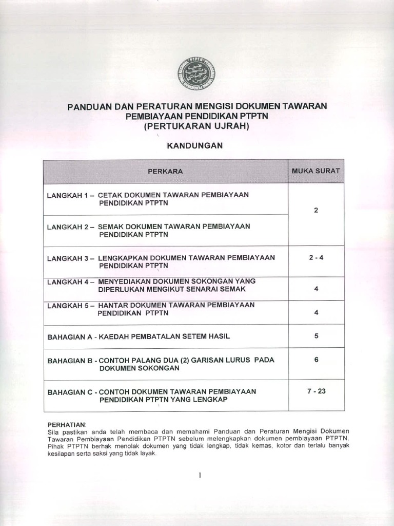 Peraturan Am Mengisi Dokumen Perjanjian Pinjaman Ptptn