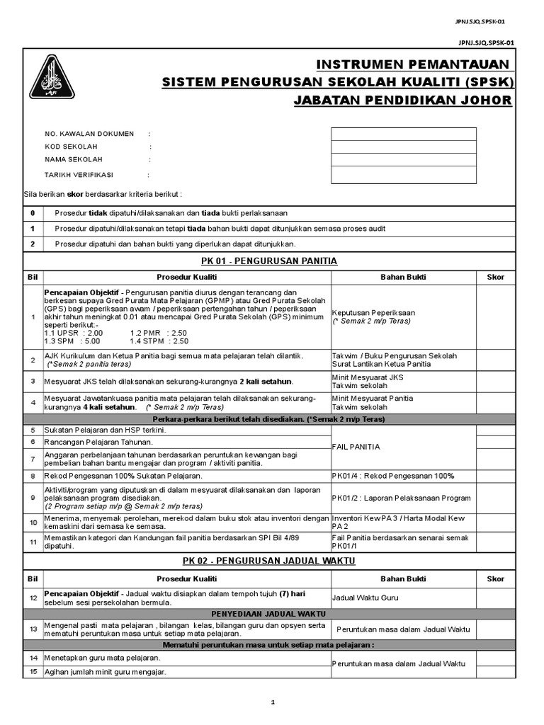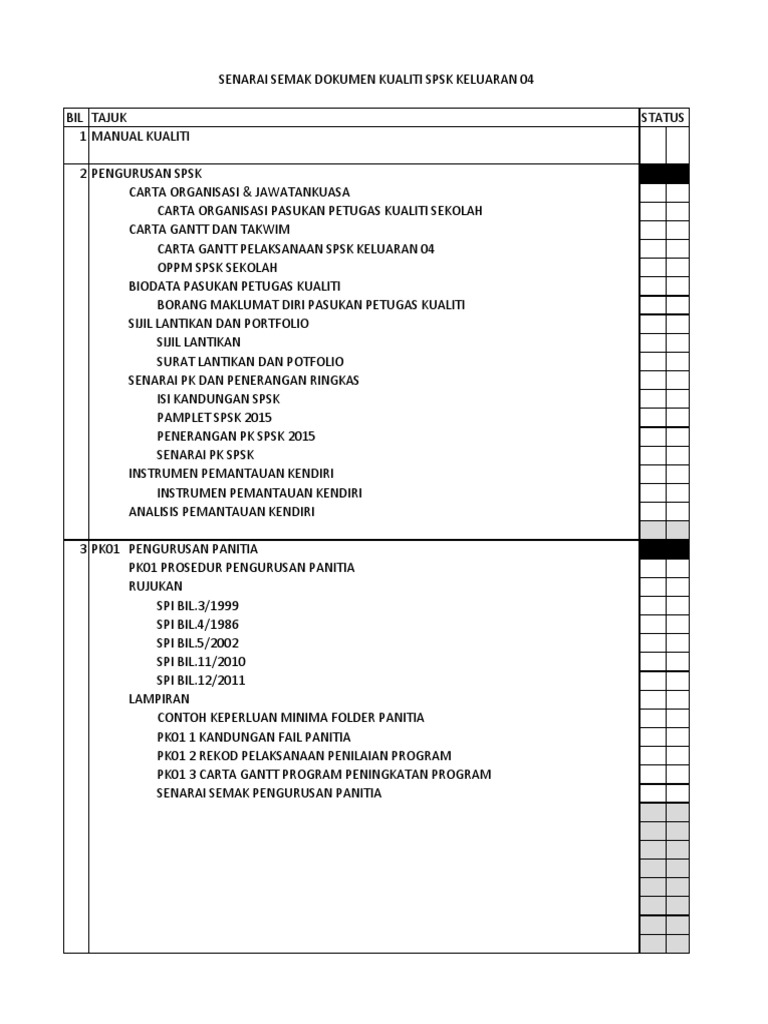 Senarai Semak Dokumen Kualiti Spsk Keluaran 04