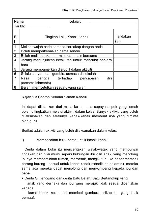 Senarai Semak Rutin Harian Pra Sekolah