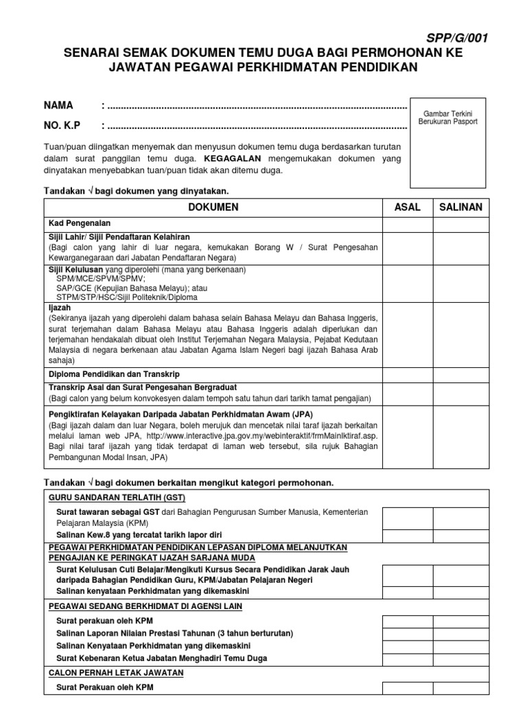 Pdf Senarai Semak Dokumen Temu Duga Bagi Permohonan Ke Jawatan Pegawai Perkhidmatan Pendidikan Puspanathan Sugumaran Academia Edu