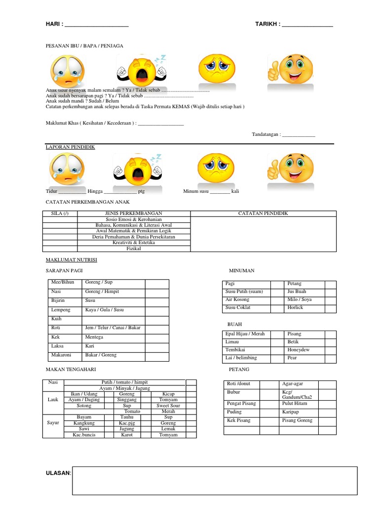 Senarai Semak Penilaian Mengikut Jenis Taska Permata Hana Facebook