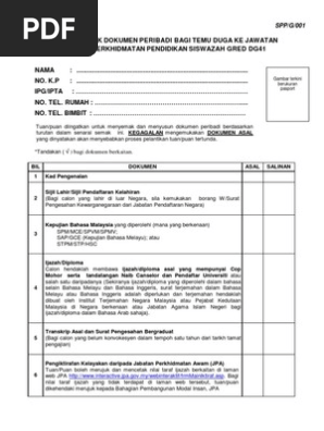 Senarai Semak Temuduga Spp Pdf Document