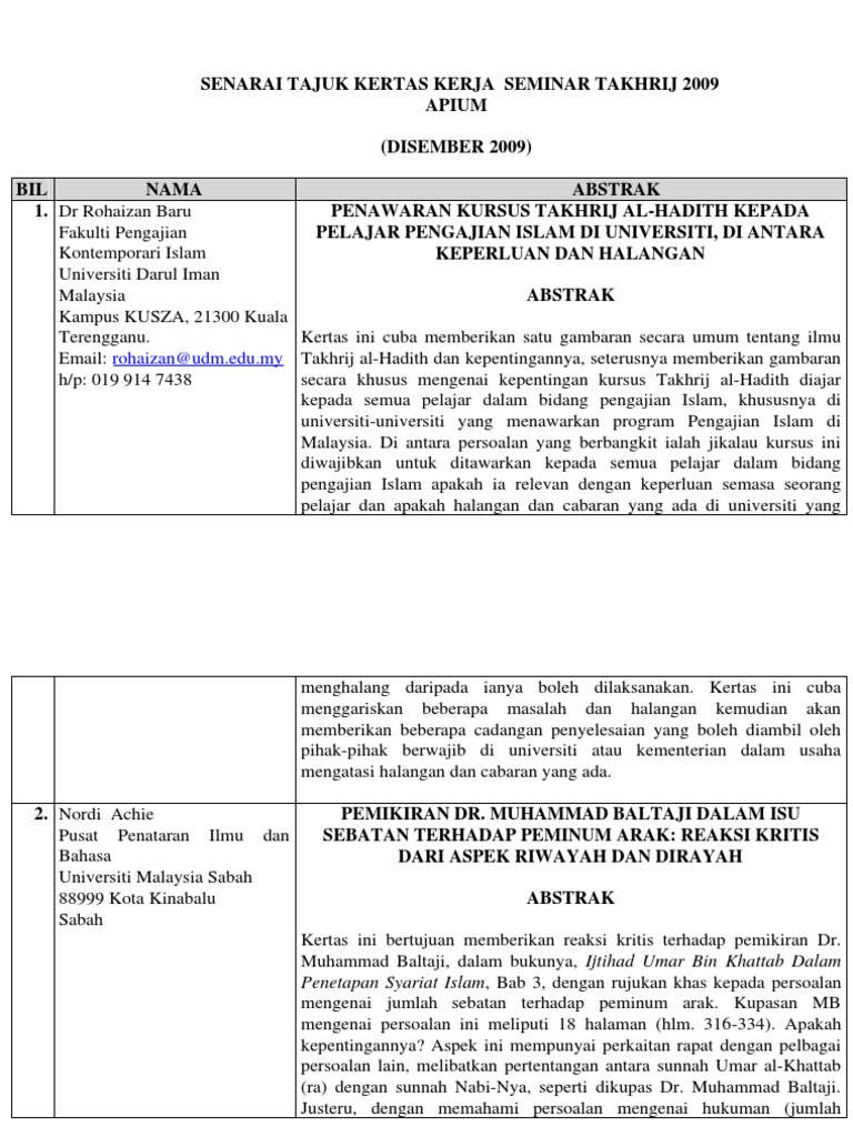 Senarai Tajuk Kertas Kerja Seminar Takhrij 2009 Pdf Document