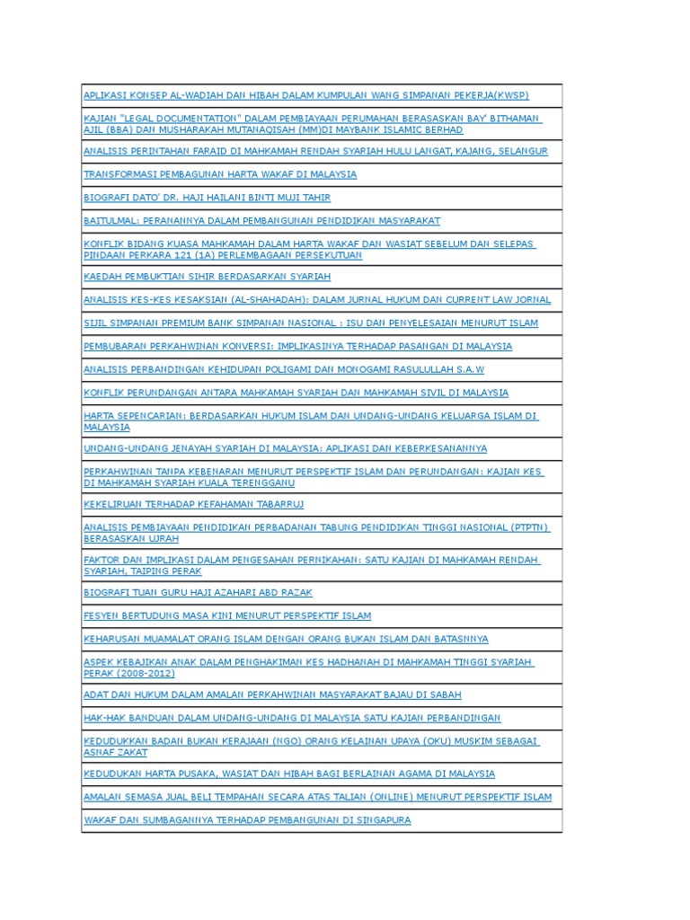 Senarai Tajuk Tesis Pengajian Islam
