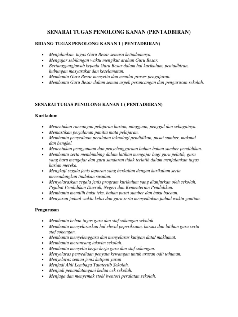 Senarai Tugas Guru Penolong Kanan Kk 4