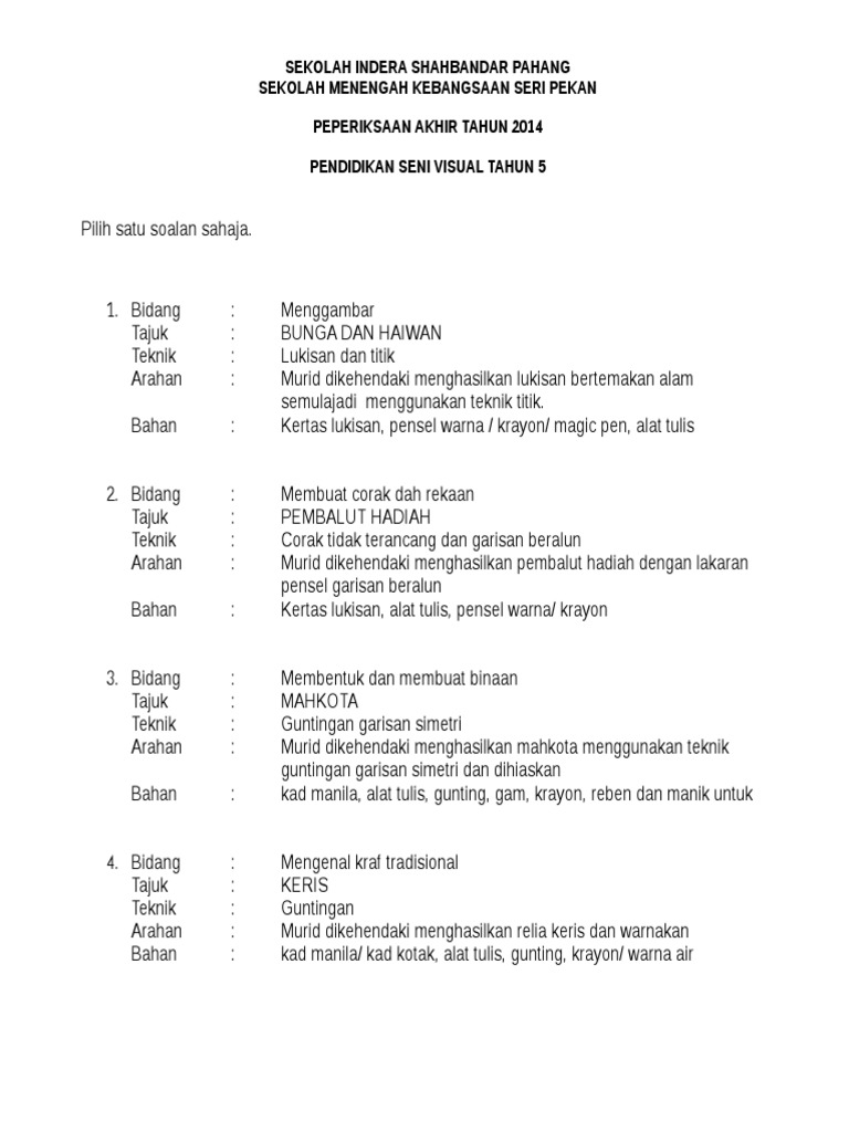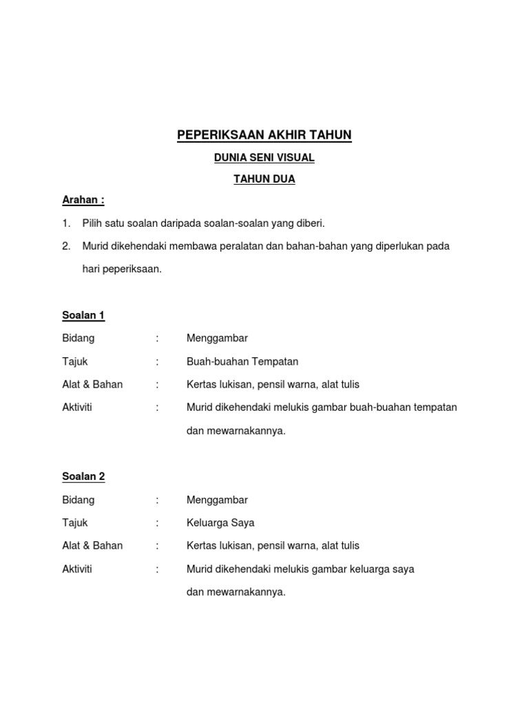 Soalan Akhir Tahun P Seni Tahun 2