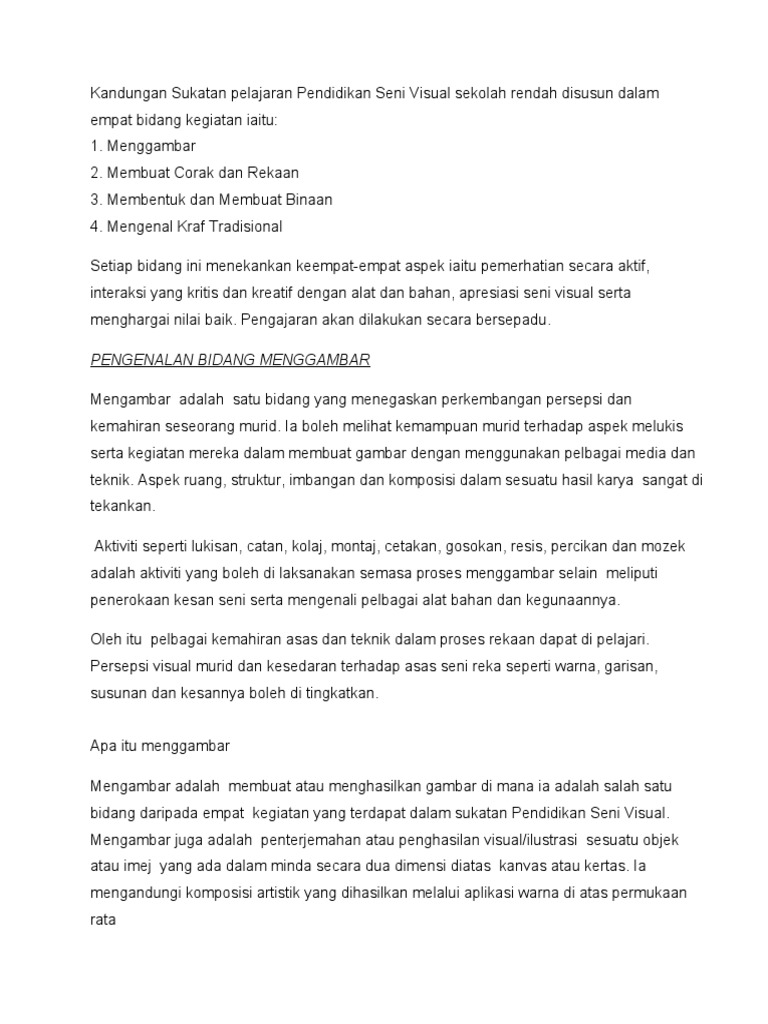 Pendidikan Seni Visual Pengenalan Bidang Mengambar