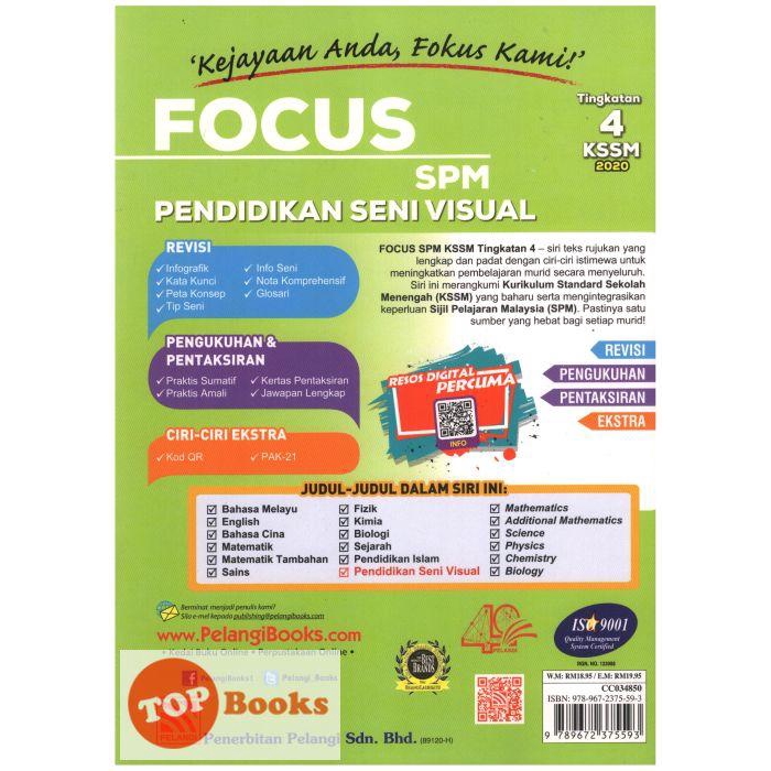 Topbooks Pelangi Focus Spm Pendidikan Seni Visual Kssm Tingkatan 4 2020 Lazada