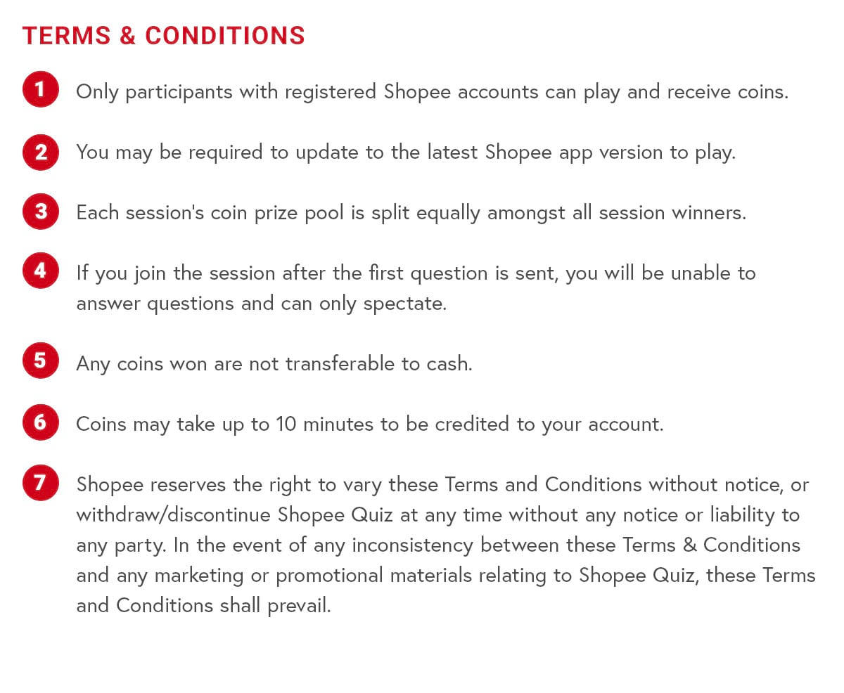 1 only orders created and successfully completed paid not later than august 15 2020 during the shopee livestreamers livestream episode were counted as valid entries. 14 2 shopee may allow sellers to generate their own shopee coins cashback vouchers each a seller coins cashback voucher which buyers may apply to eligible purchases from the seller s store. For the avoidance of doubt maybank is not liable or responsible for any of the shopee terms and conditions. Simply make sure that you satisfy the following terms and conditions.