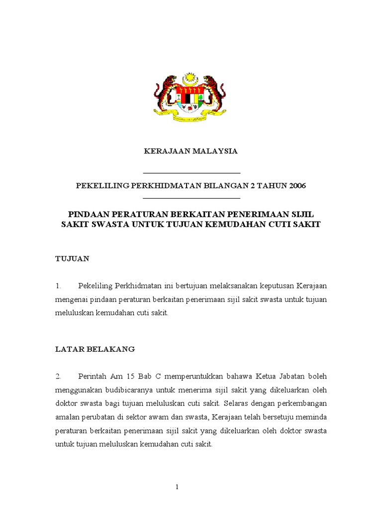 Surat Perkeliling Cuti Sakit Kementerian 1009 Pdf Document