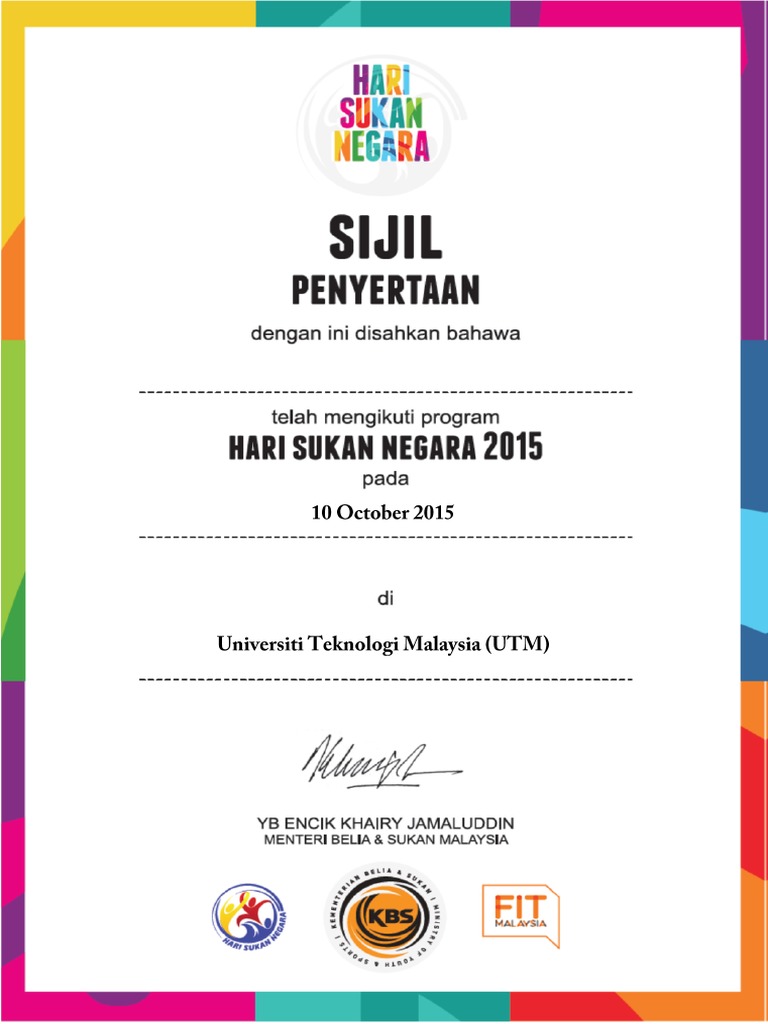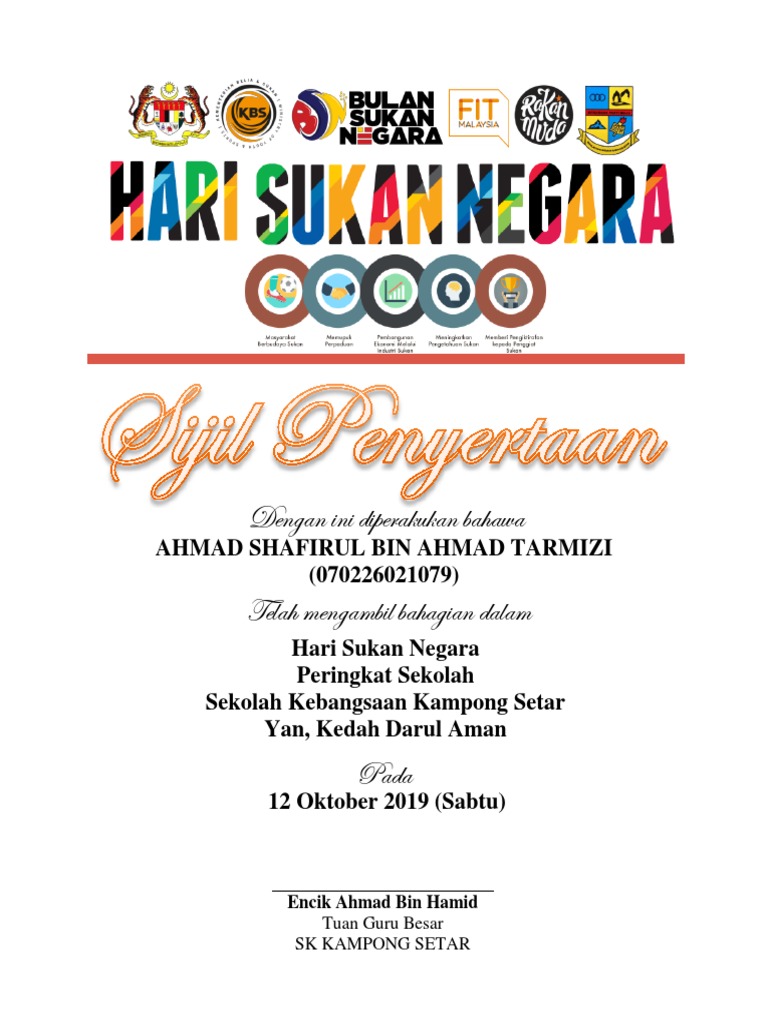 Sijil Penyertaan Hari Sukan Negara Pada 8 Oktober Ini Download Segera