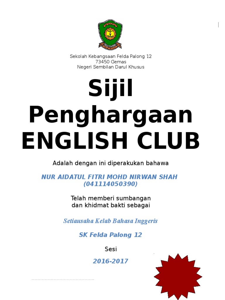 Sijil Penghargaan Dalam Bahasa Inggeris