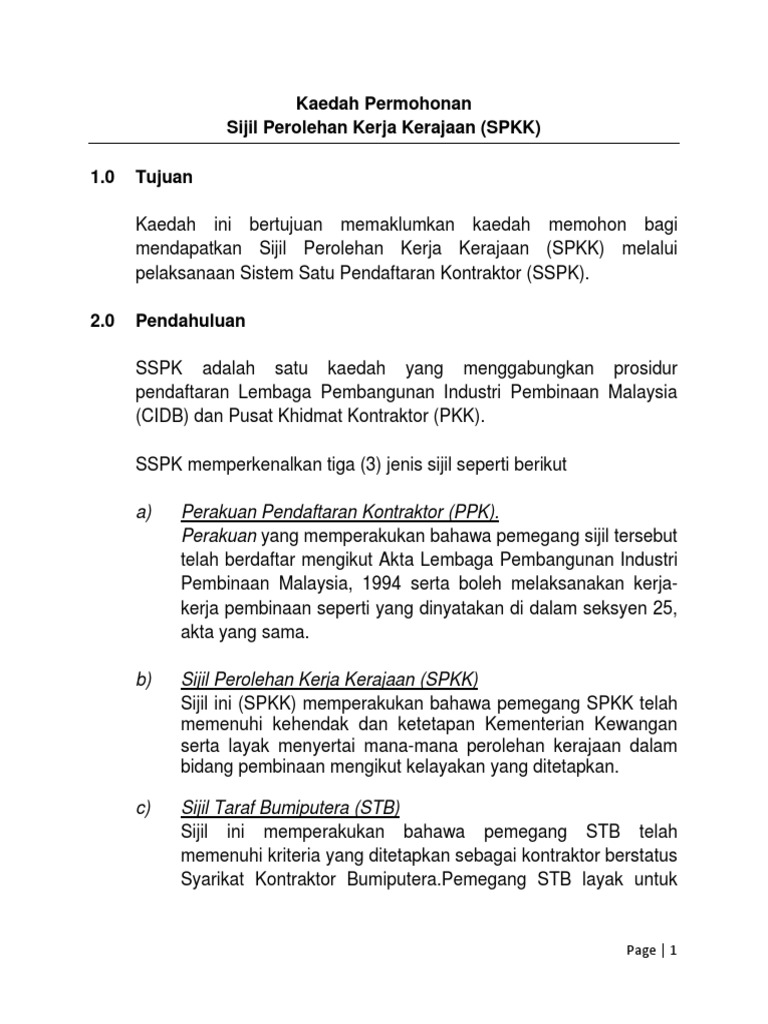 Sijil Perolehan Kerja Kerajaan Spkk Oleh Cidb Iii Sijil Taraf Bumiputera Stb