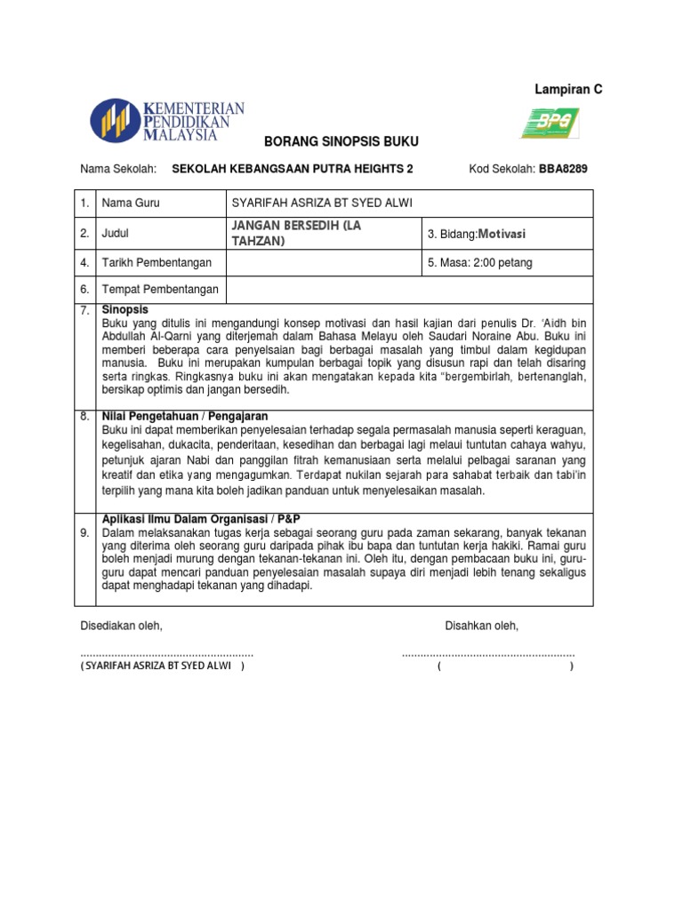 Borang Sinopsis Buku