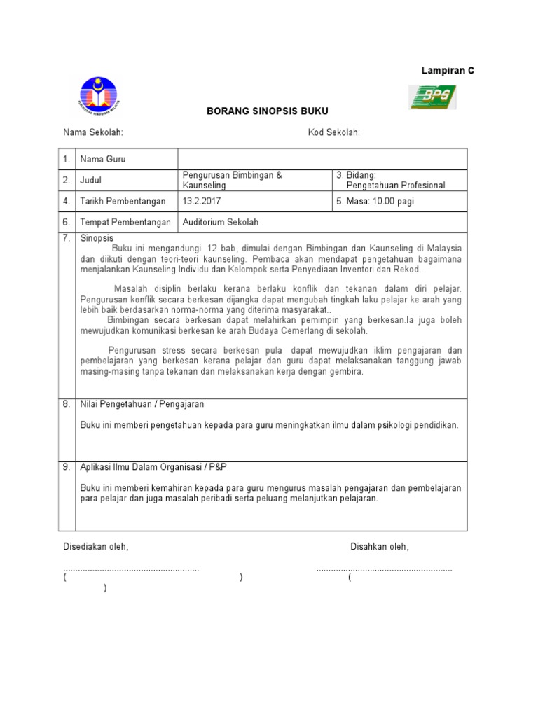 87842623 Borang Sinopsis Buku Untuk Guru Doc Lampiran C Borang Sinopsis Buku Nama Sekolah Smk Kapit Kod Sekolah Yee 7101 1 2 Nama Guru Judul 4 6 7 Course Hero
