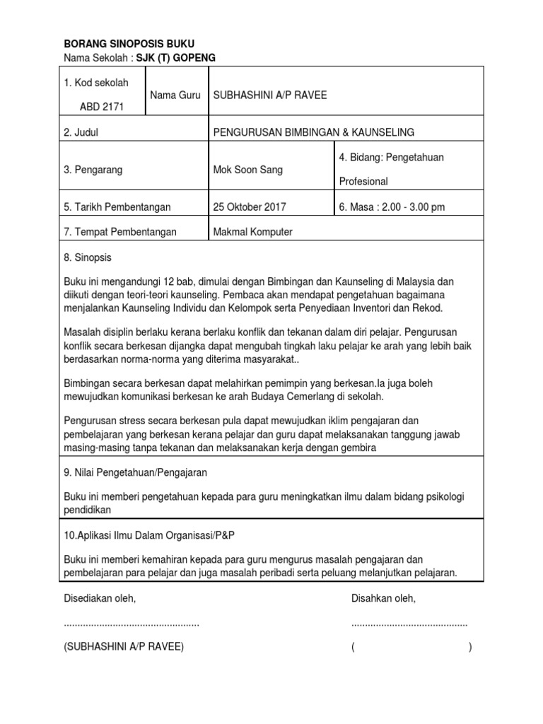Contoh Sinopsis Buku Bagi Para Guru Pdf Document