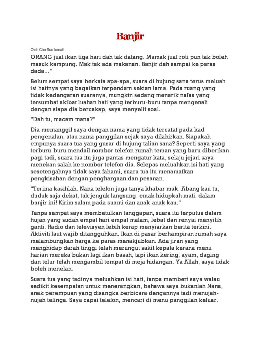 Cerpen Banjir Di Mata Emak Komsas Tingkatan 2