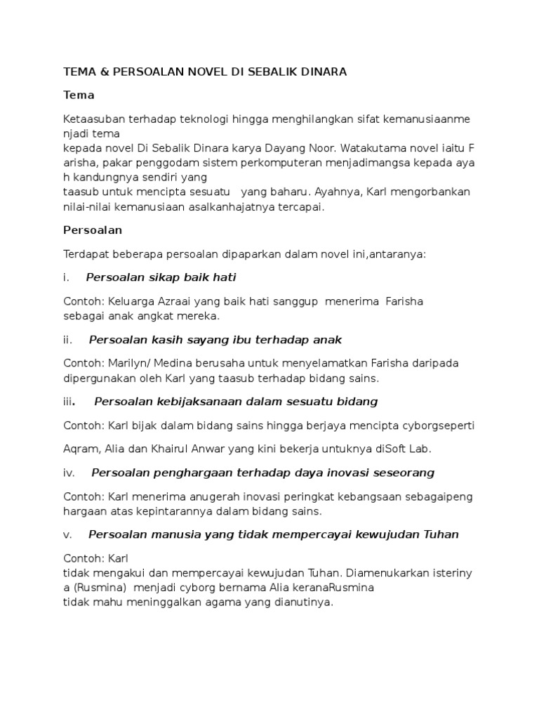 Tema Dan Persoalan Novel Di Sebalik Dinara Doc