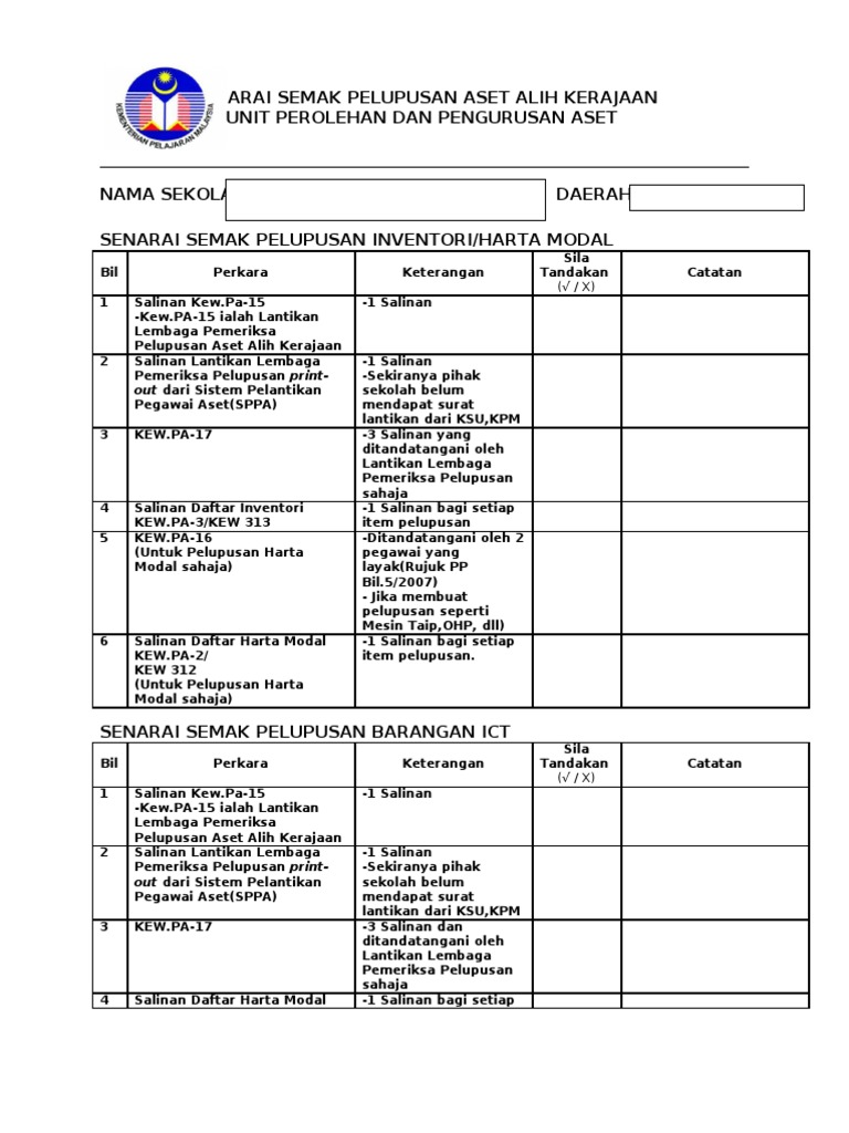 Senarai Semak Pelupusan Aset Alih Kerajaan
