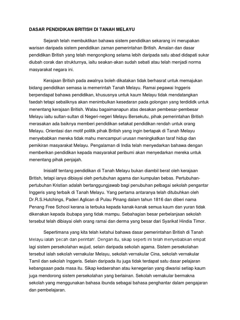 Sejarah Pendidikan Semasa Penjajahan British Docx