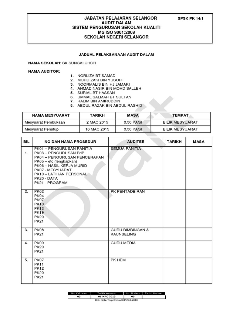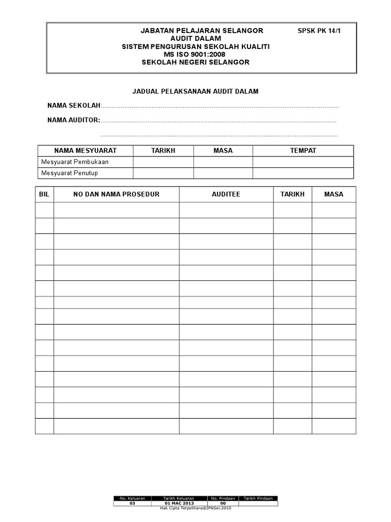 Borang Pk 14 1 Jadual Pelaksanaan Audit Dalam New