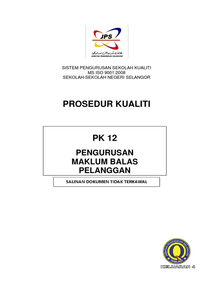 Pk 12 Prosedur Kualiti Pengurusan Maklum Balas Pelanggan Pdf
