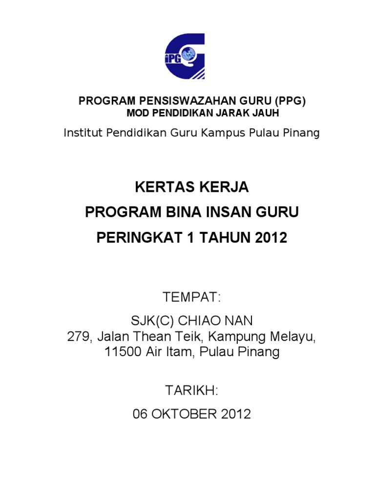 Kertas Kerja Big Chiao Nan 6 Okt 2012