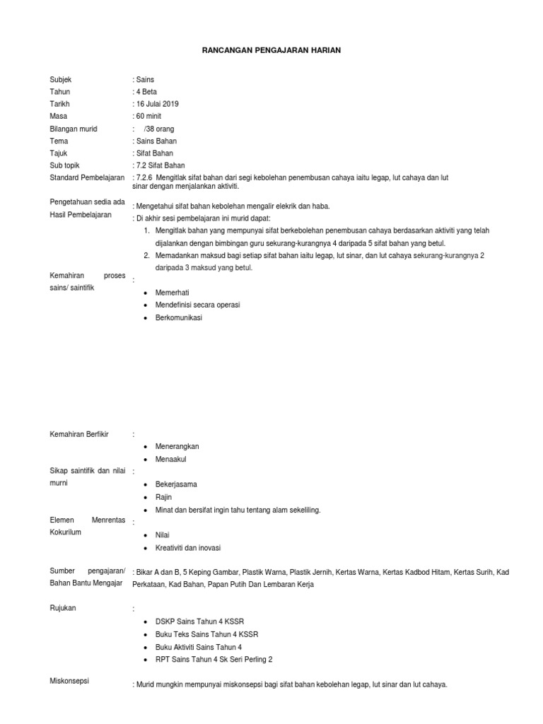 Rph Sains Tahun 4 2019