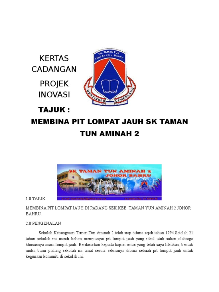 Kertas Cadangan Projek Inovasi Tajuk Membina Pit Lompat Jauh Sk Taman Tun Aminah 2