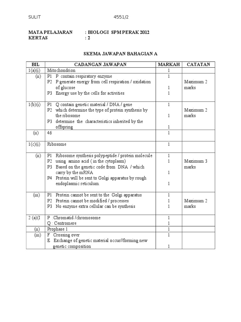 Skema Jawapan Percubaan Spm Biologi 2012 Negeri Sembilan