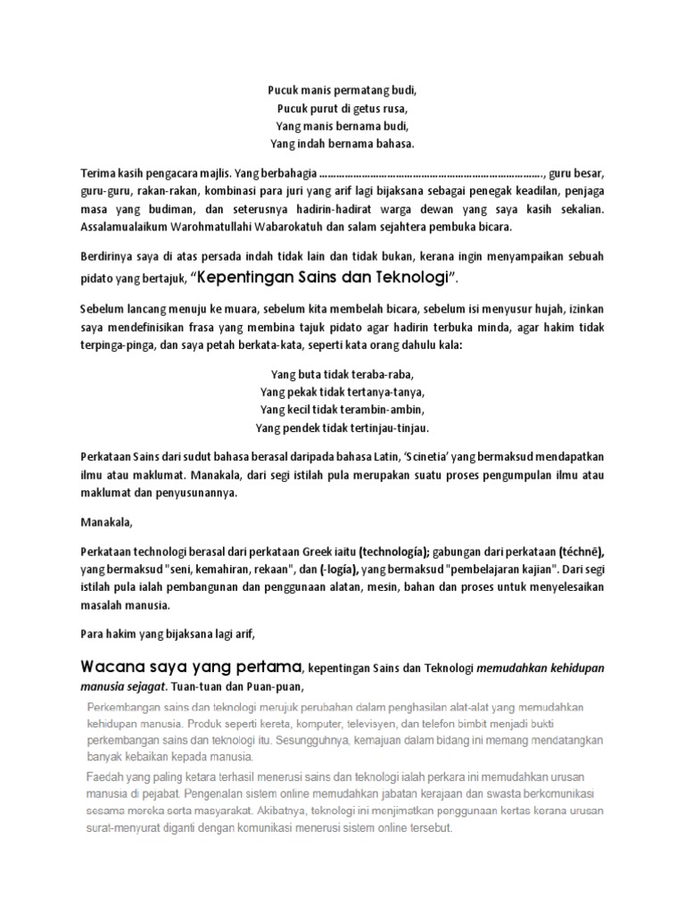 Skrip Pidato Bahasa Melayu Sekolah Rendah Kepentingan Sains Dan Teknologi