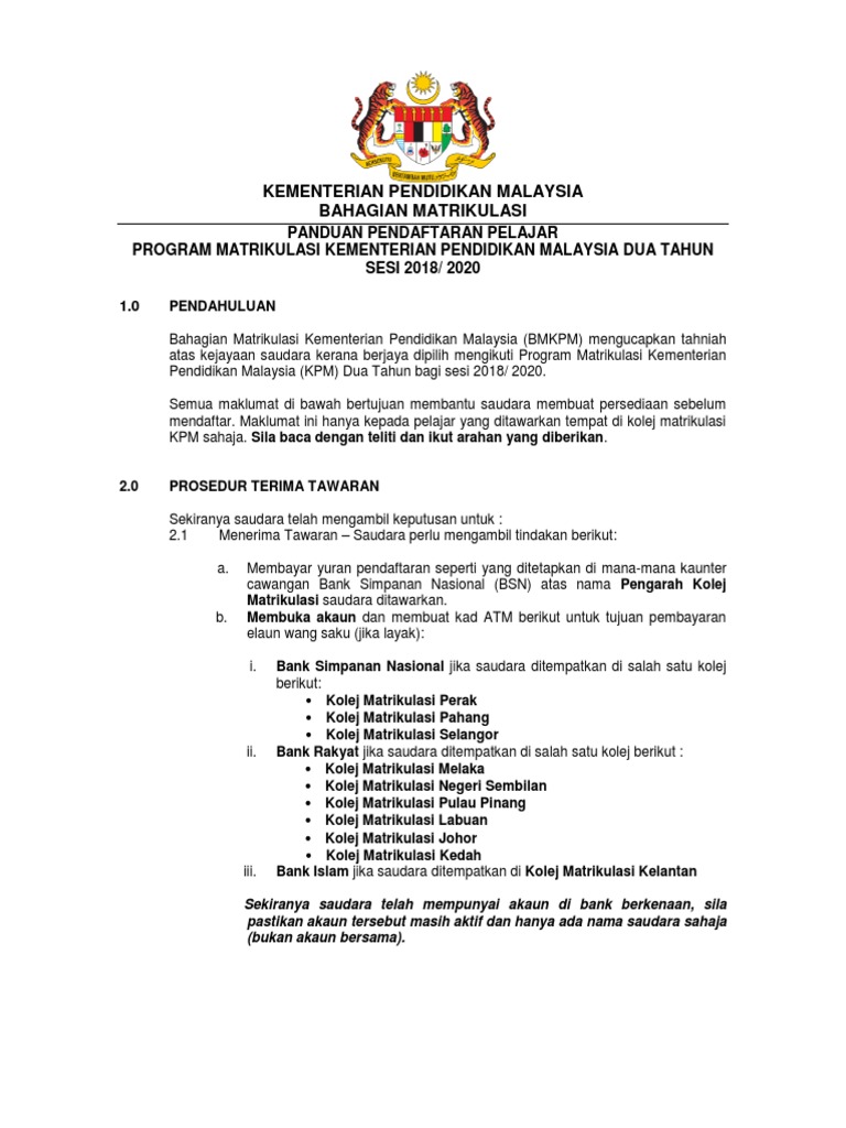 Segala Persoalan Tentang Perihalan Pengambilan Pelajar Program Matrikulasi Myschoolchildren Com