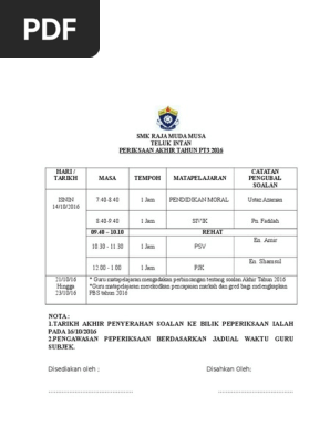 Pindaan Jadual Waktu Persekolahan Tahun Smk Raja Muda Musa Teluk Intan 36000 Perak Facebook
