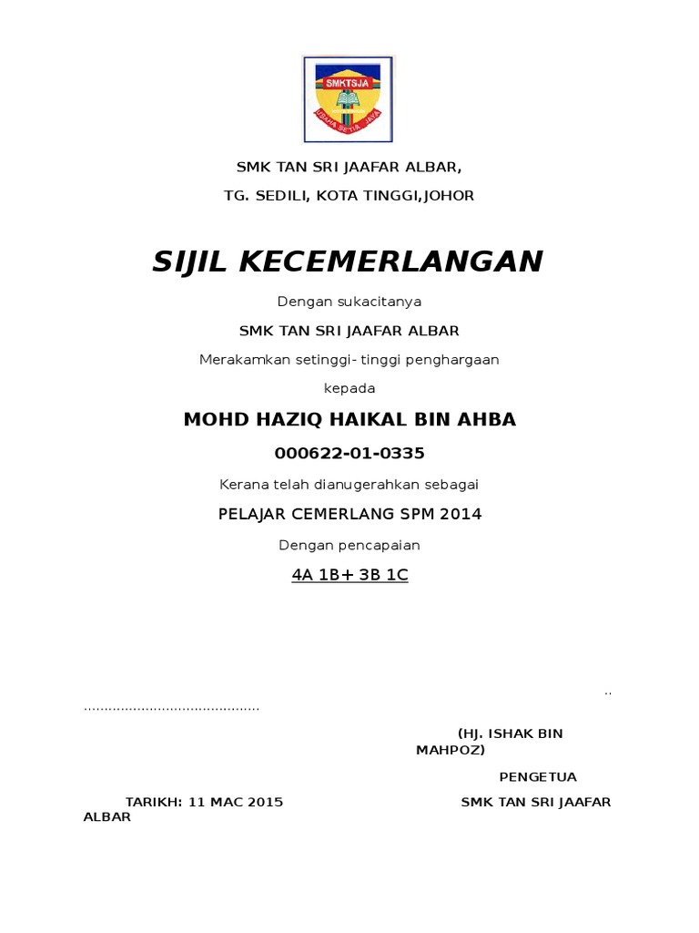 Cth Sijil Kecemerlangan