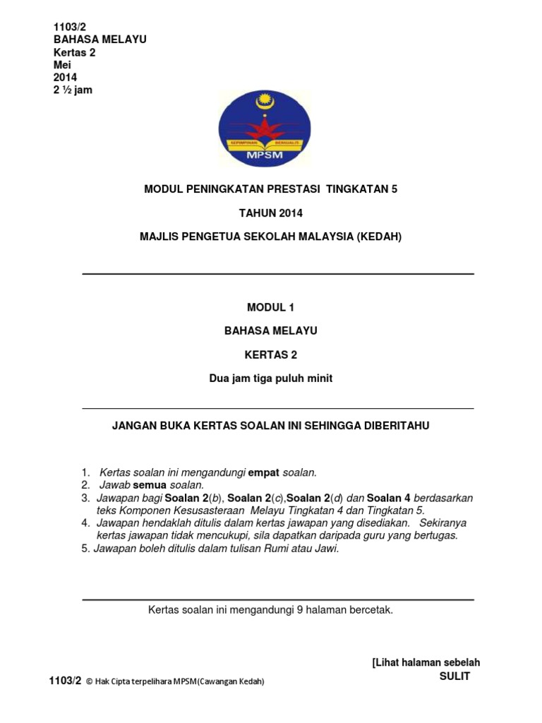 Modul Gerak Gempur Spm Bahasa Melayu Kertas 2 Pdf 1 Modul Gerak Gempur Spm 2017 Bahasa Melayu Kertas 2 2 Jam 30 Minit Jangan Buka Kertas Soalan Ini Course Hero