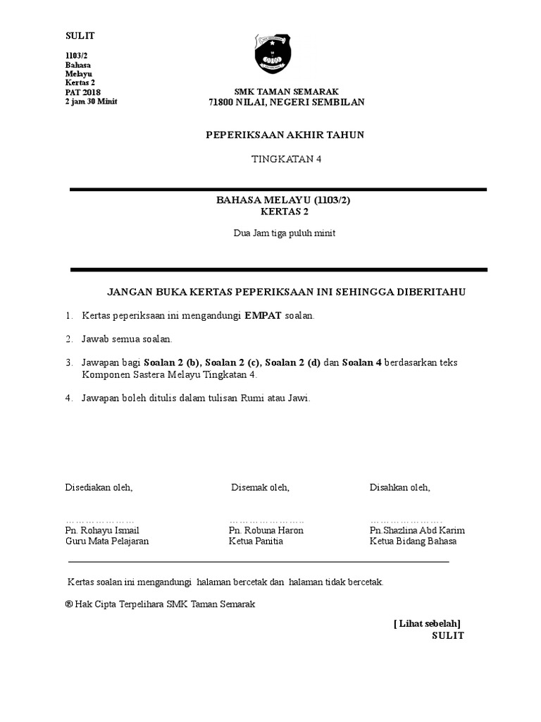 Laman Bahasa Melayu Spm Soalan Kertas Bahasa Melayu 2 Dan Skema Jawapan Peperiksaan Percubaan Spm Smk Seri Londang 2017